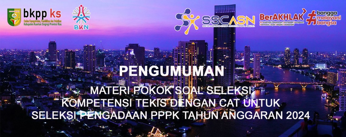 Bersama ini kami sampaikan Materi Pokok Soal Seleksi Kompetensi Teknis dengan CAT untuk Seleksi Pengadaan PPPK Tahun Anggaran 2024, silahkan lihat dan/atau unduh sebagaimana terlampir pada tautan dibawah ini: