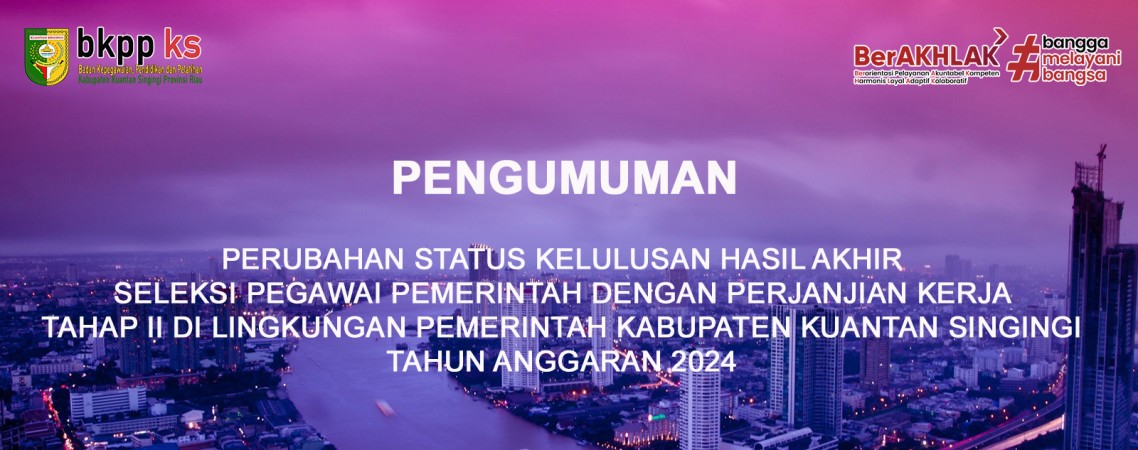 PENGUMUMAN PERUBAHAN STATUS KELULUSAN HASIL AKHIR SELEKSI PPPK TAHAP II DI LINGKUNGAN PEMERINTAH KABUPATEN KUANTAN SINGINGI TAHUN ANGGARAN 2024
